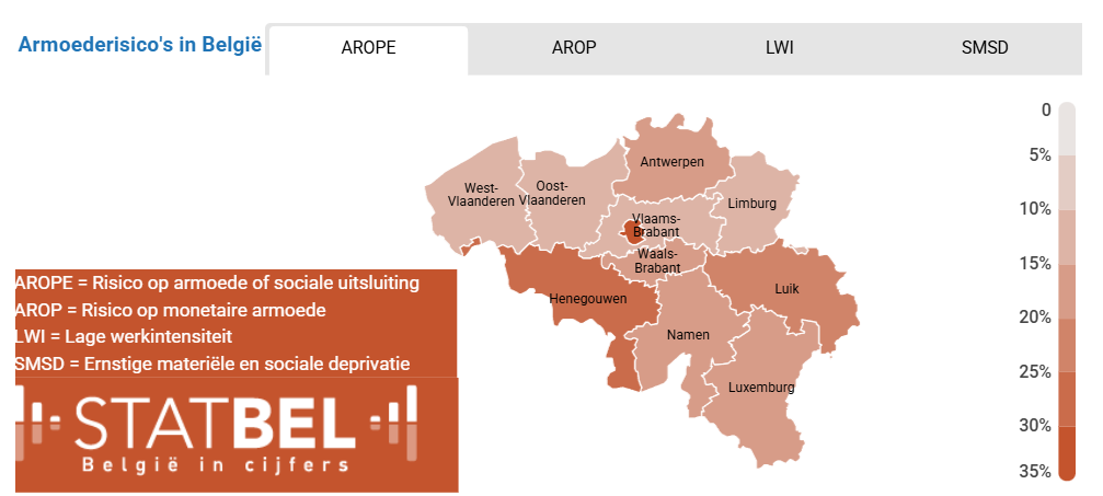 Daarnaast ervaart 11,1% van de Belgen materiële en sociale deprivatie, dat wil zeggen dat ze moeite hebben met essentiële uitgaven zoals onverwachte kosten, verwarming of zelfs vakantie.
