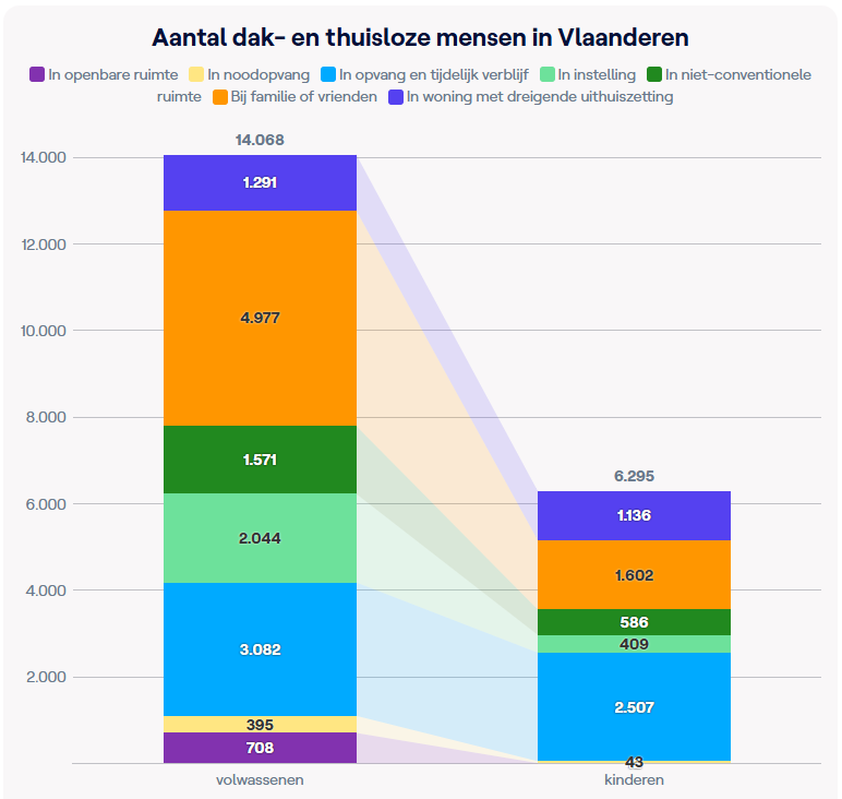 Dakloosheid betekent dat mensen geen stabiele woonplaats hebben en vaak ook beperkt toegang hebben tot basisvoorzieningen zoals voedsel, gezondheidszorg en onderwijs. In Vlaanderen telt bijna 20.000 dak- en thuislozen, onder wie 5.707 kinderen volgens de telling van KU Leuven.